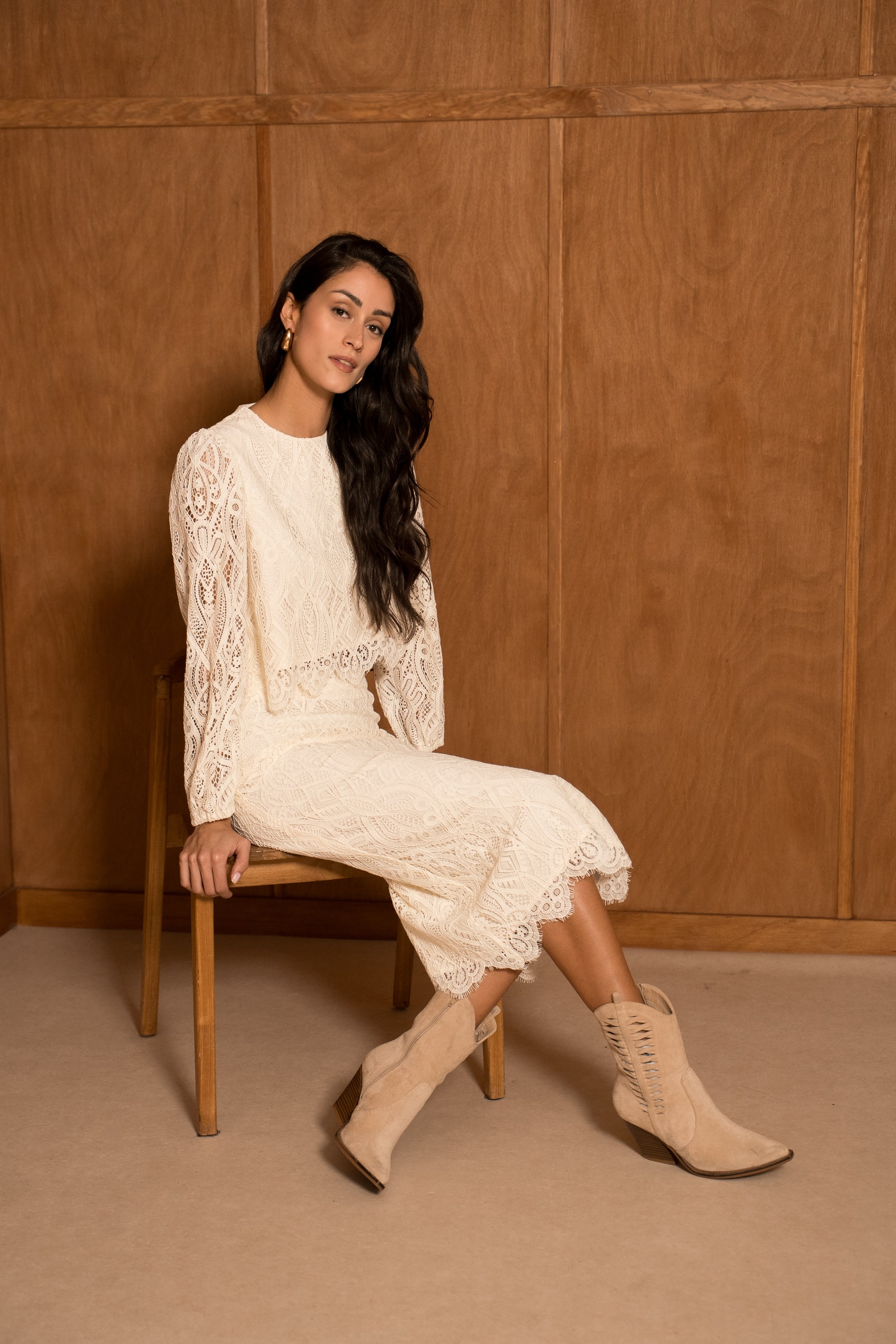 Jupe Garance midi en dentelle guipure